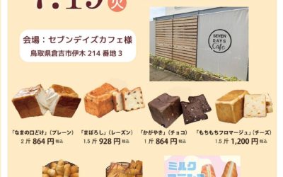 7月度のご案内です!!!! ◎日時:7/19(火)15時半~18時 ◎受取場所:セブンデイズカフェ ◎予約方法:電話予約0857-51-0821 ※予約の期日7/12(火)...